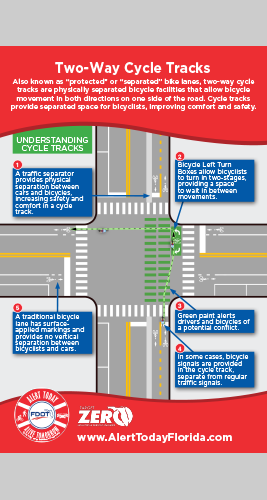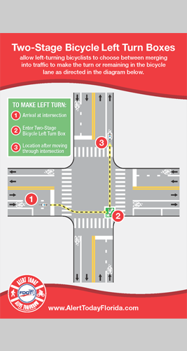 In Florida, roughly 36% of all traffic fatalities and serious injuries occur at conventional (stop & signal-controlled) intersections.* Roundabouts have been proven to reduce the number of fatal and severe injury crashes by 82% over a stop-controlled intersection, and 78% over a signalized intersection.** Conventional intersections have 32 vehicle and 16 pedestrian conflict points, while roundabouts have only 8 vehicle and 8 pedestrian conflict points. Because there are no crossing movements in a roundabout, left-turn and right-angle crashes are eliminated.