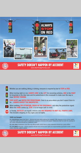 While motorists are seeing the steady red, the WALK sign is lit for pedestrians allowing them to cross the roadway. After the pedestrian WALK phase ends, the pedestrian signal changes to a flashing DON'T WALK to notify pedestrians not to begin crossing. During the flashing DON'T WALK phase, the PHB displays alternating flashing red lights to drivers. The flashing red indicates to drivers that they must stop and yield to pedestrians in the crosswalk and can proceed once pedestrians are clear.